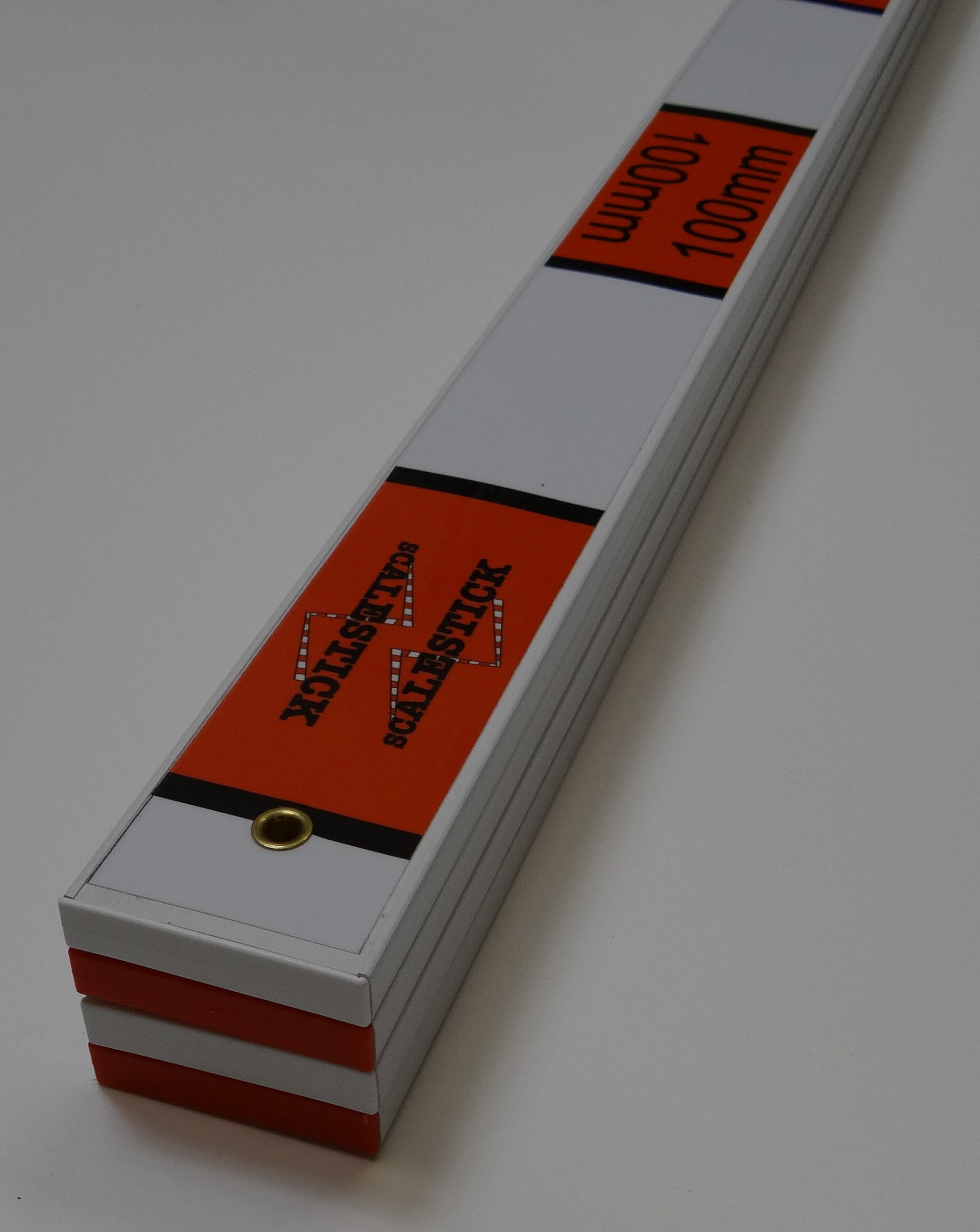 The original standard scalestick consists of four 1m length planks, clearly marked in 100mm sections